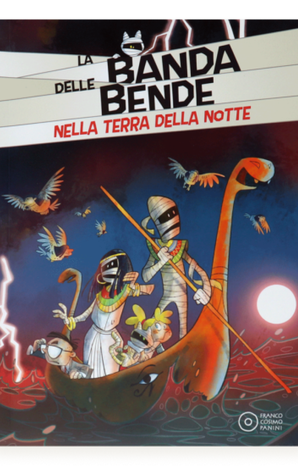 La gattina Miti è scomparsa! L'unico indizio è un misterioso buco luminoso che si è aperto in uno dei luoghi più magici del Museo. Quando la Banda delle Bende lo attraversa ha inizio un'avventura tra dèi, sfingi parlanti, uccelli dalla testa umana e fiumi impetuosi, fino a una minacciosa caverna... Non sarà certo una barzelletta (o forse sì?) sfuggire alla terra della notte!